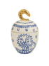 Small ceramic Gunia sugar bowl with lid and golden handle. The blue motif is hand painted and inspired by Ukrainian naive drawings. Perfect for special occasions and everyday use. Made from porcelain.